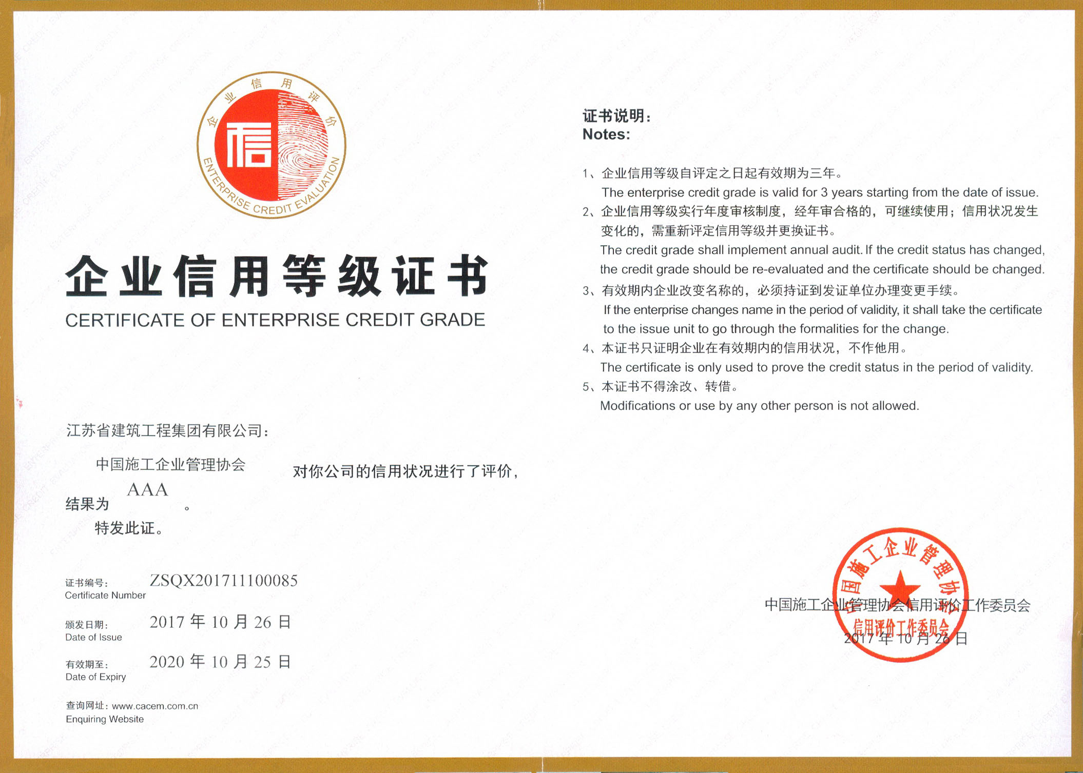 全国企业信用评价AAA级信用企...