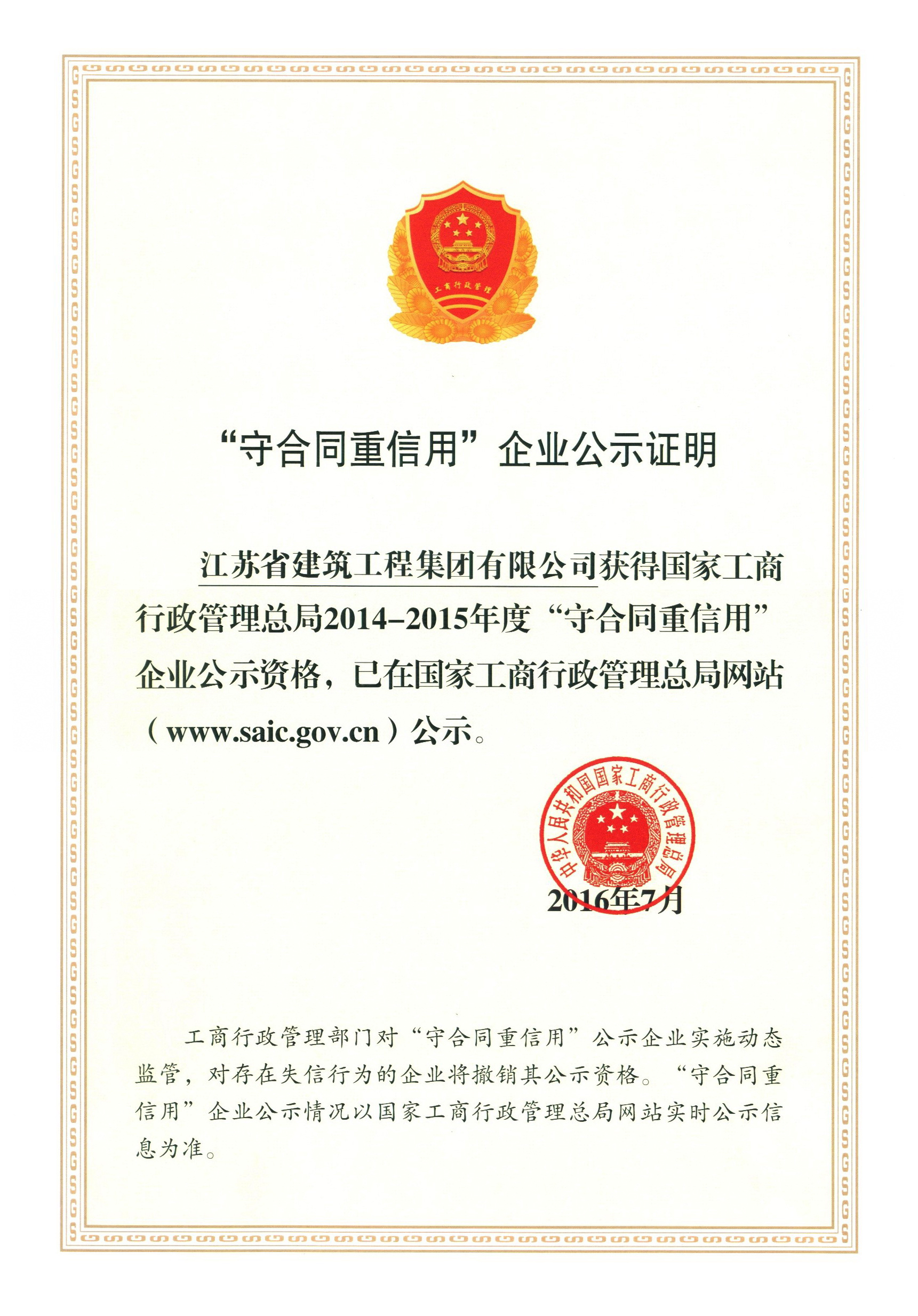 全国守条约重信用企业